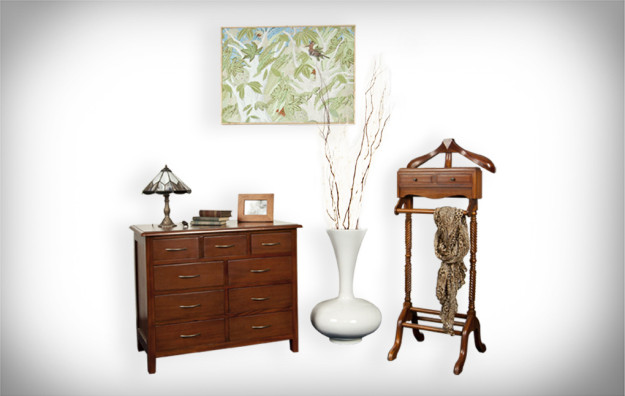 Nábytek na této fotografii : prádelník CS0057 , němý sluha OP0005 , dřevěná váza